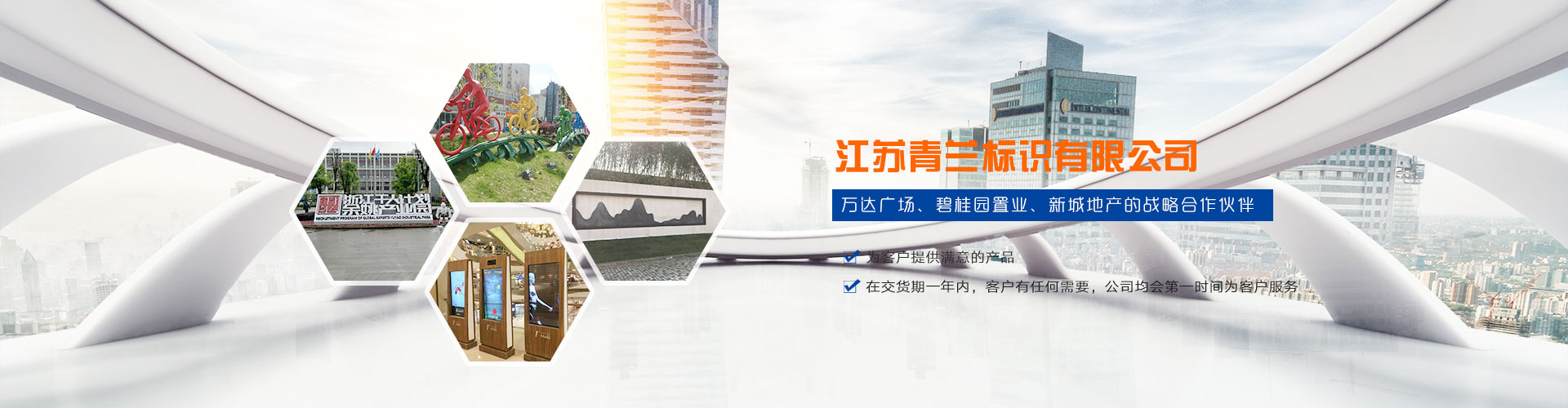 江蘇青蘭標(biāo)識(shí)有限公司前身是江蘇一棵松標(biāo)牌有限公司,2018年3月更名為:江蘇青蘭標(biāo)識(shí)有限公司,是一家***標(biāo)識(shí)標(biāo)牌生產(chǎn)企業(yè),公司集設(shè)計(jì),策劃,生產(chǎn),工程施工,售后服務(wù)于一體,主要服務(wù)于酒店賓館,***,醫(yī)療機(jī)構(gòu),辦公樓宇,商業(yè)場(chǎng)所,園林景觀,特色小鎮(zhèn),社區(qū)房產(chǎn)等。 我公司是萬(wàn)達(dá)廣場(chǎng),碧桂園置業(yè),新城地產(chǎn)的戰(zhàn)略合作伙伴,是其標(biāo)識(shí)導(dǎo)視系統(tǒng)品牌供應(yīng)商庫(kù)成員。 公司始終視質(zhì)量,信譽(yù)為生命,以誠(chéng)信務(wù)...